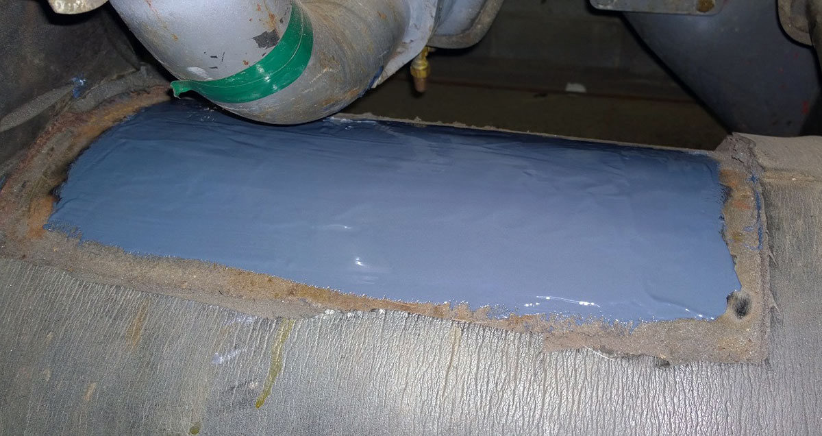 - lepení desek, vyplnování korozních úbytku a lokální opravy mokrých nebo olejem znecištených trubek, kde nelze použít tryskání pískem